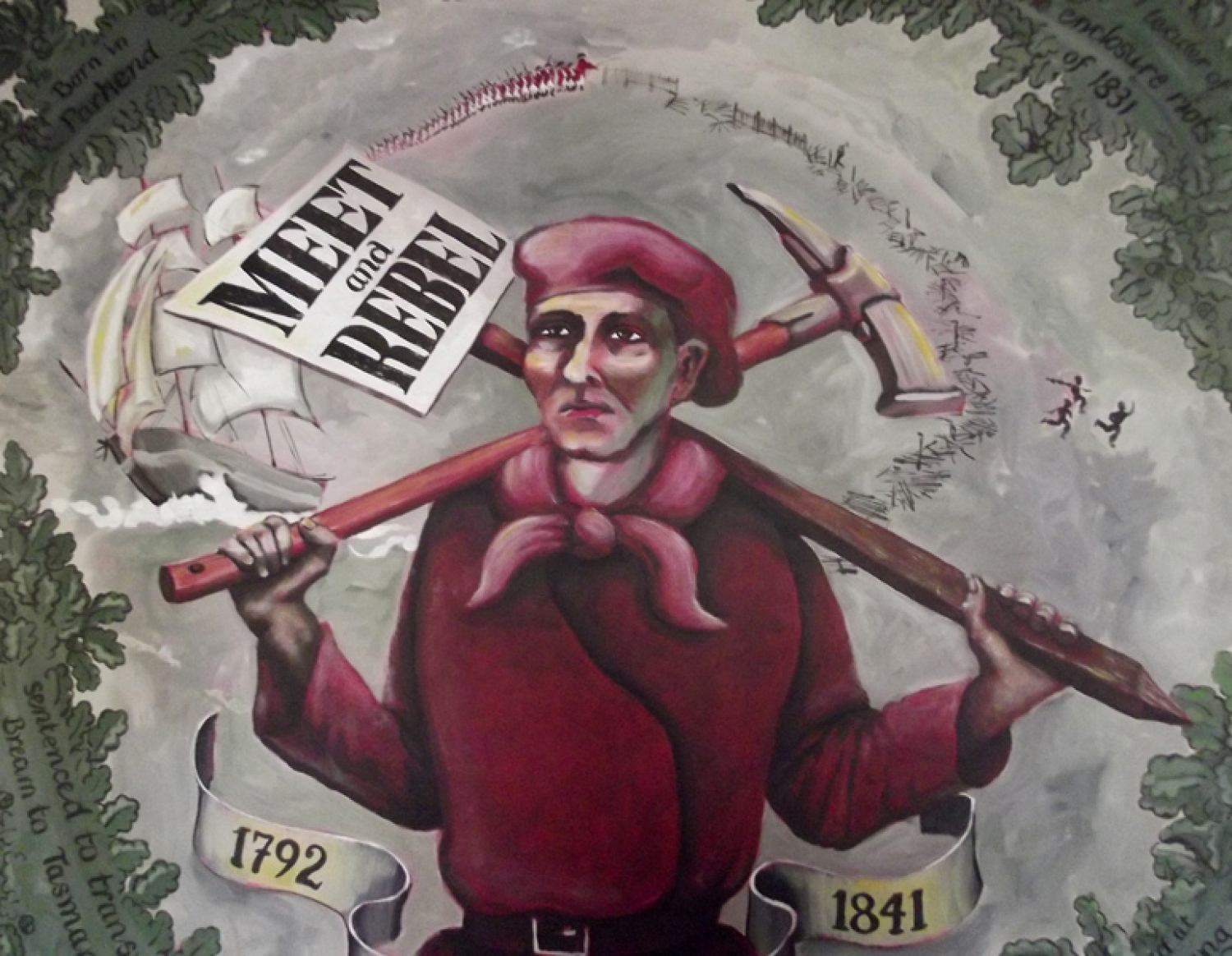 Image credit: 'Warren James' wall mural by local artist Tom Cousins, in Fountain Inn, Parkend 2015.